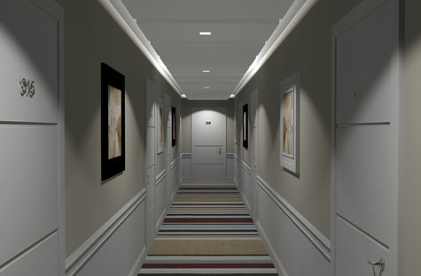 Per scelta della committenza sono state realizzate solo junior suite, cioè camere molto grandi. Grazie all’ampliamento in facciata è stato recuperato spazio dell’edificio permettendo l’aumento del numero delle stanze.